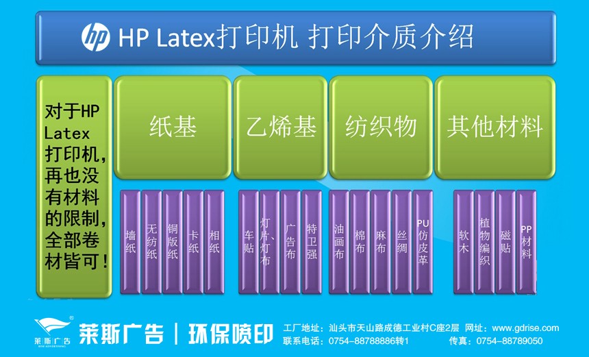 過去的2016年,對于廣大(dà)的中國老百姓來(lái)說,最熱的話(huà)題當屬“霧霾”了。而日益嚴峻的環保形勢,也使得(de)衆多(duō)的廣告制(zhì)作(zuò)商風聲鶴唳。環保檢查停業整頓,危廢排放遭到處罰,廣告材料價格上(shàng)漲的聲音(yīn)不絕于耳。因此,廣告制(zhì)作(zuò)行(xíng)業的環保設備,環保材料,環保工藝,以及污染的危廢處理(lǐ)等将成為(wèi)2017年噴印市場(chǎng)的主旋律。惠普公司的環保戶內(nèi)外多(duō)用途寬幅打印機也成了大(dà)家(jiā)關注的焦點,汕頭萊斯廣告緊随市場(chǎng)脈搏,率先在汕頭引進了HP Latex環保噴印設備。
